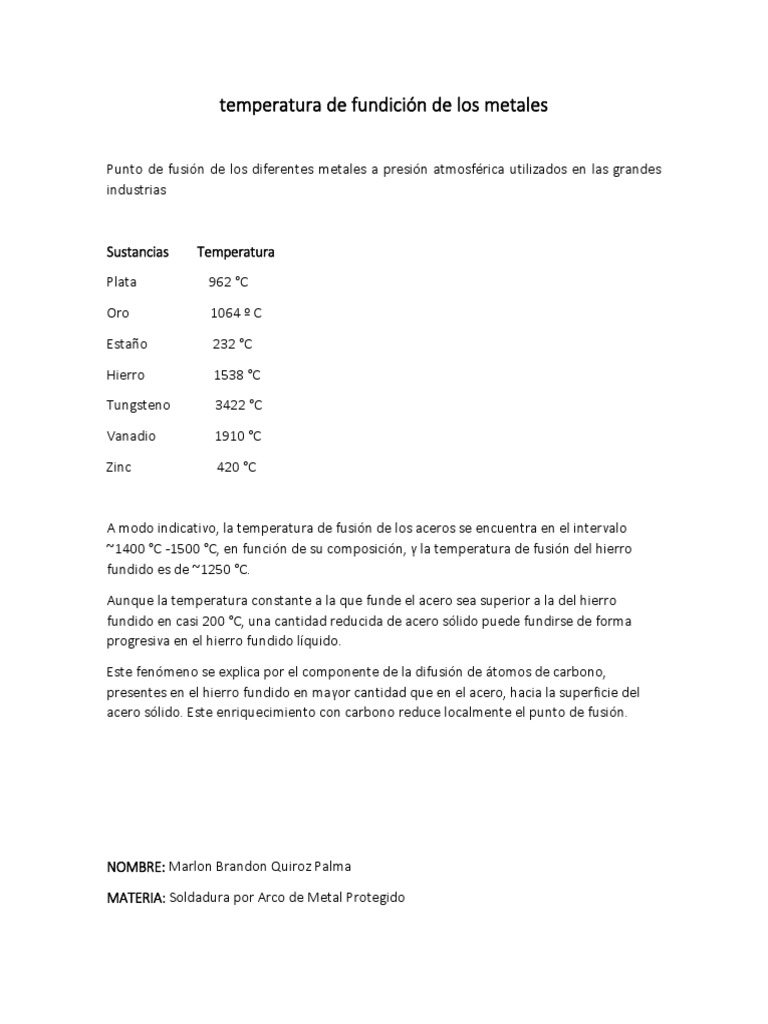 La temperatura de fusión de los metales y sus aleaciones Distribuidora de Aluminio