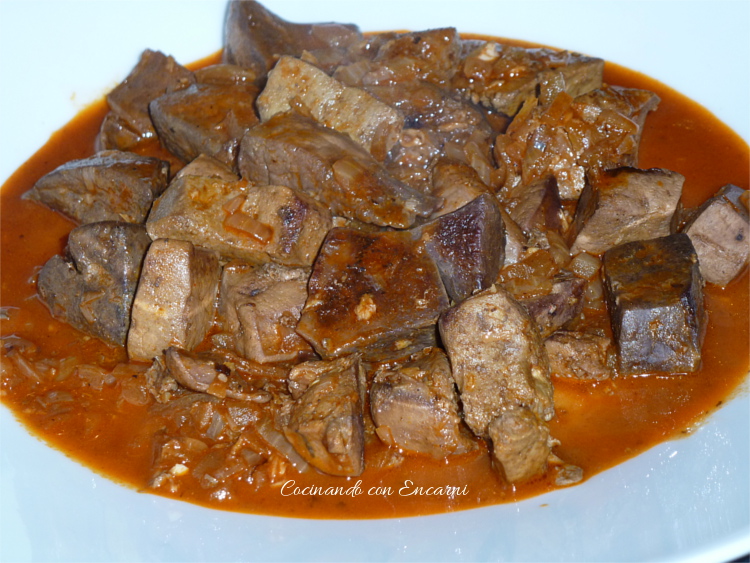 Elaboración 5 m. Cocción 45 m. Troceamos en dados grandes el corazón y el hígado de cordero y los salteamos en una sartén amplia con una cucharada de aceite a fuego fuerte. Cuando estén.