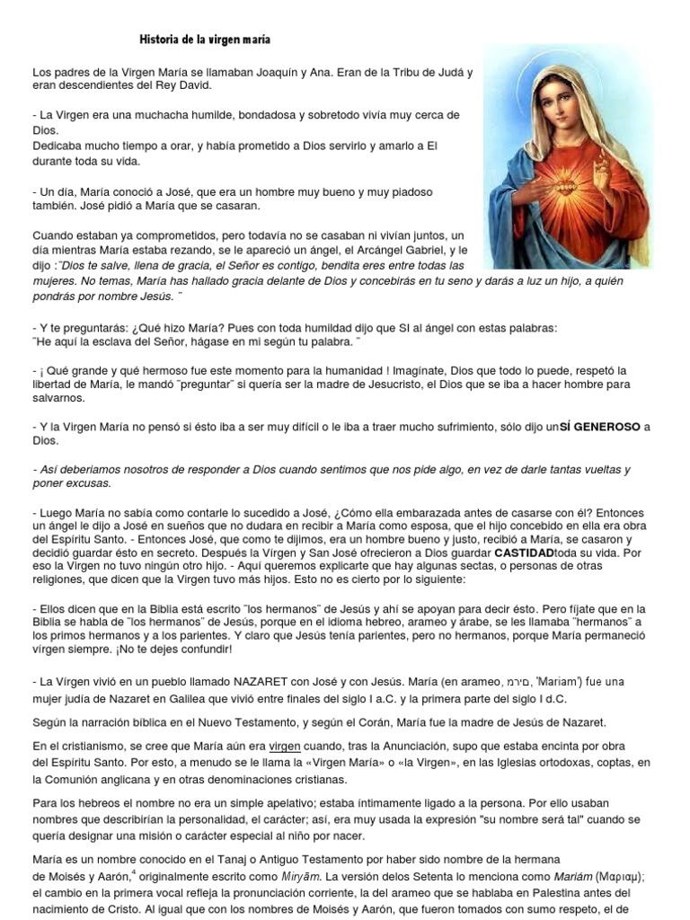 Historia de la virgen maría San José María, madre de Jesús