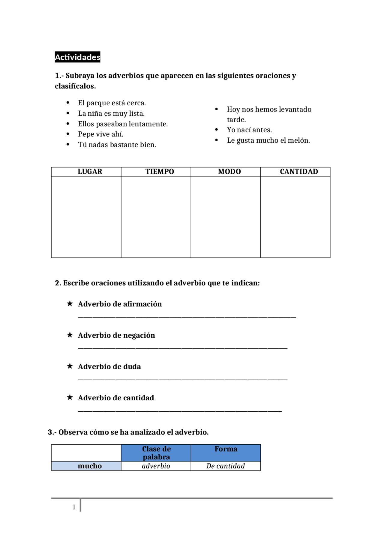 Localización y clasificación de adverbios.. Adverbios 5 primaria. Loading ad. laurajr Miembro desde hace 4 years 11 months. Download PDF Loading ad. LIVEWORKSHEETS. Hojas de trabajo interactivas para estudiantes y profesores de todos los idiomas y materias. Worksheets.